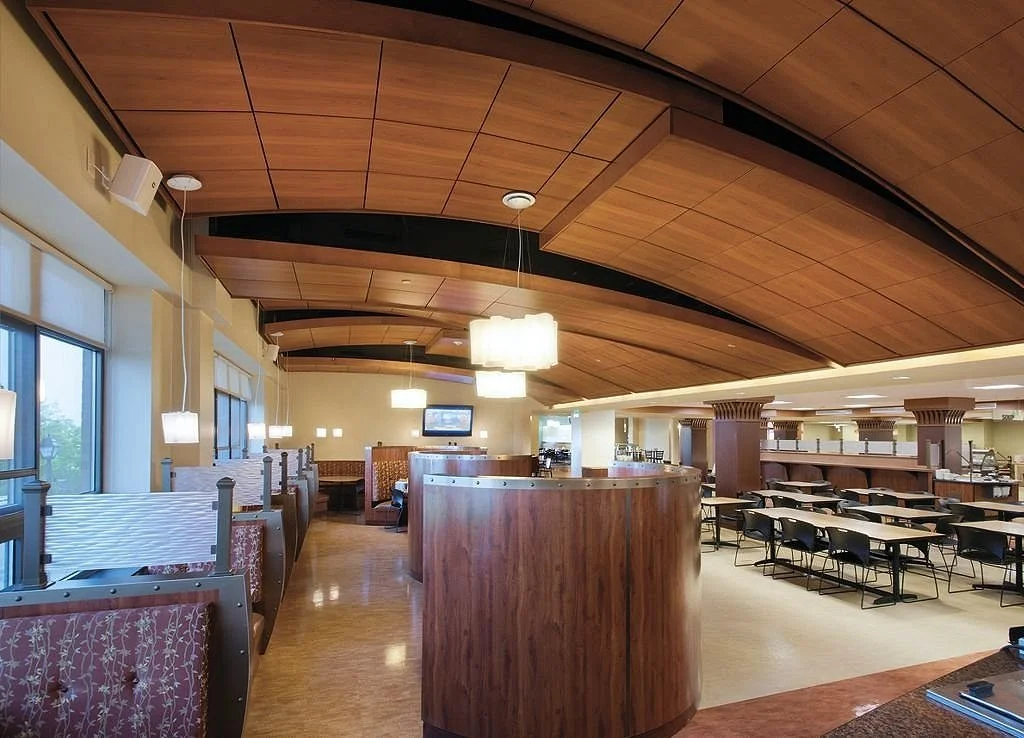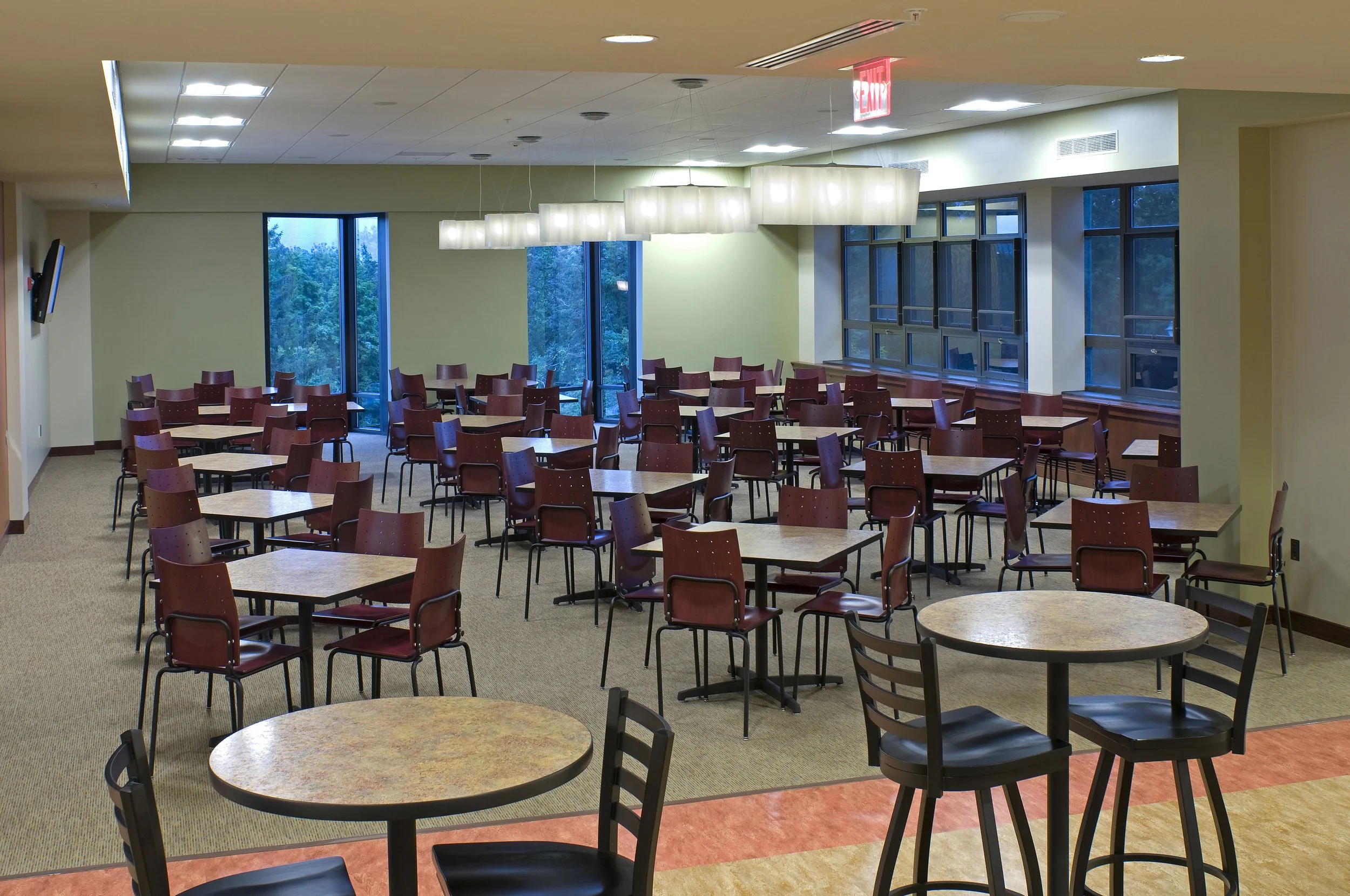 Mount Saint Mary College’s primary dining halls expanded and re-imagined with all new materials and fixtures. Finish amenities include new exterior window openings, a variety of booths and soft seating, textured wall surfaces, warm floor and ceiling finishes, decorative lighting and architectural wood detailing.